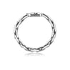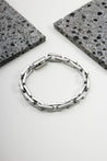 Uma peça de design arrojado e arquitetônico. Esta pulseira se destaca por seus elos geométricos maciços e um acabamento espelhado, criando um acessório moderno e de presença inquestionável para o homem contemporâneo.