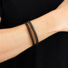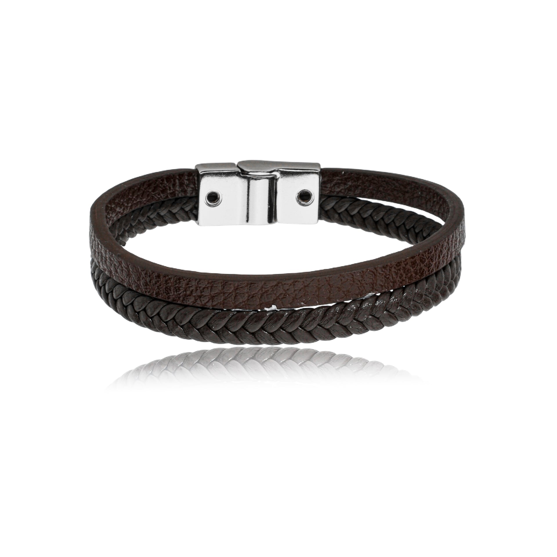 O mix perfeito de texturas em um design clássico. Esta pulseira une a suavidade do couro liso e a robustez do couro trançado, criando um acessório com profundidade visual e um estilo versátil e sofisticado.