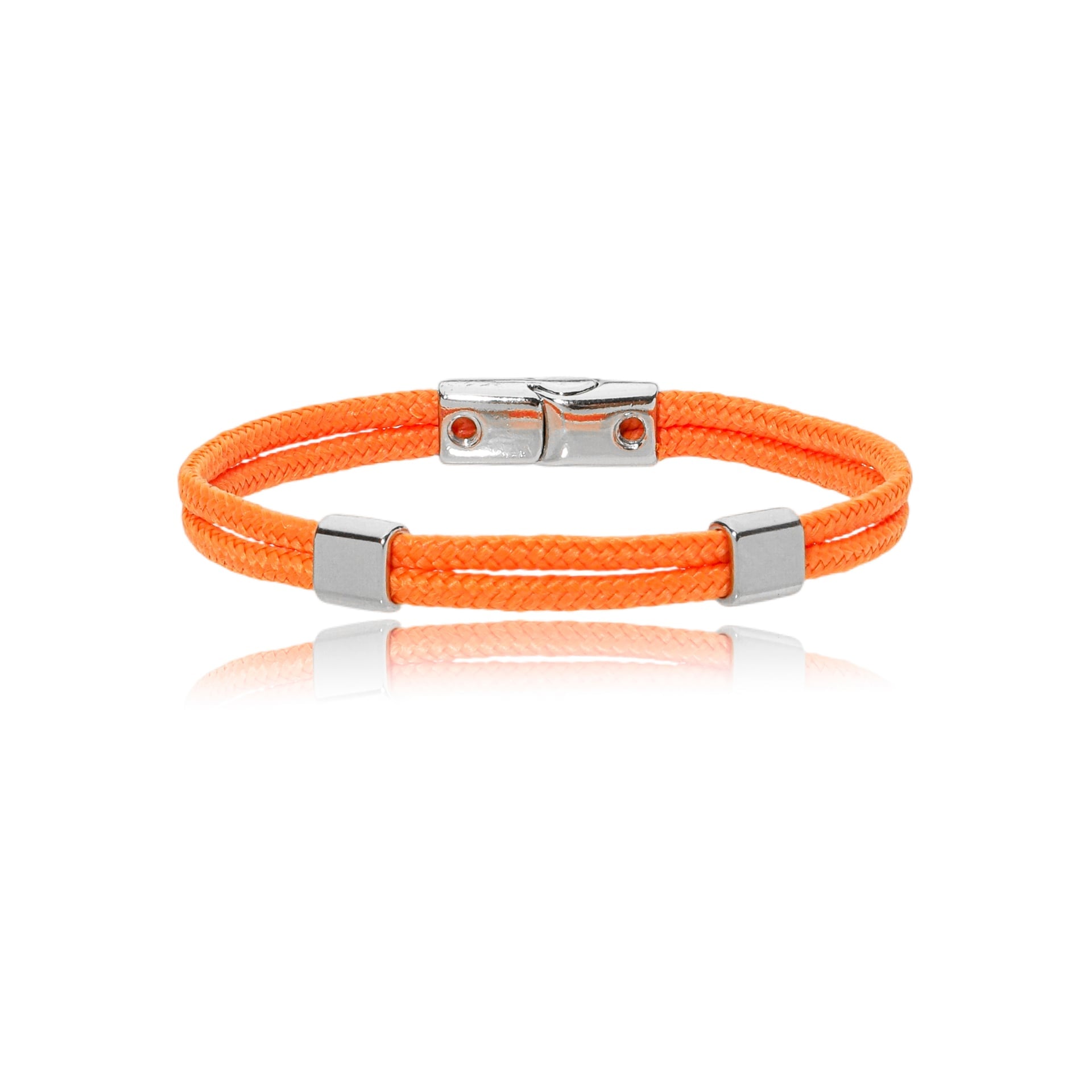Uma dose de energia e cor para o seu estilo. Esta pulseira combina o tom vibrante da corda laranja com a sofisticação moderna do Ródio Branco, criando um acessório que transmite confiança e uma atitude arrojada.
