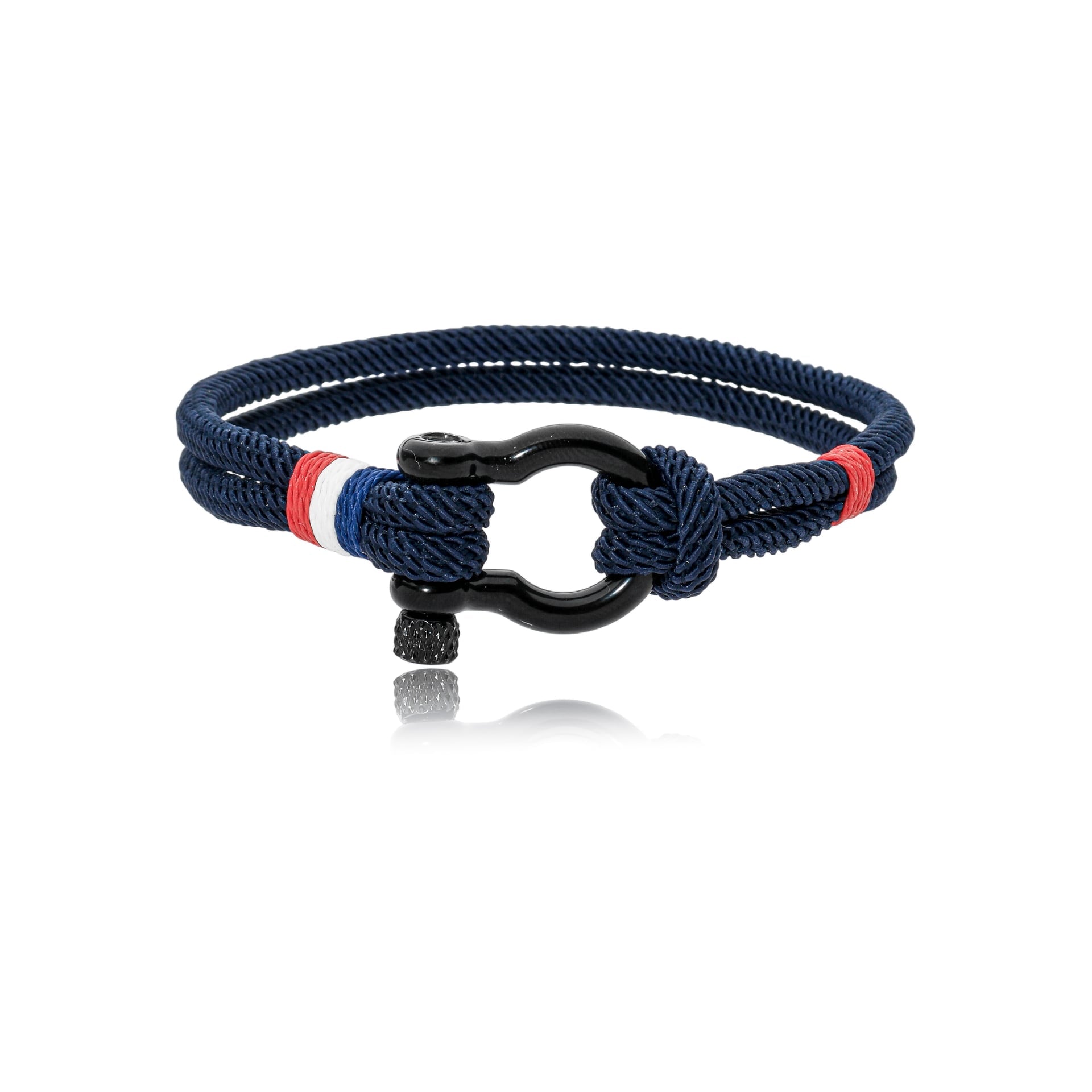 A essência do estilo náutico em um design autêntico. Esta pulseira combina a robustez da corda naval e do fecho de manilha com o charme do detalhe tricolor, criando um acessório que evoca o espírito livre do mar.