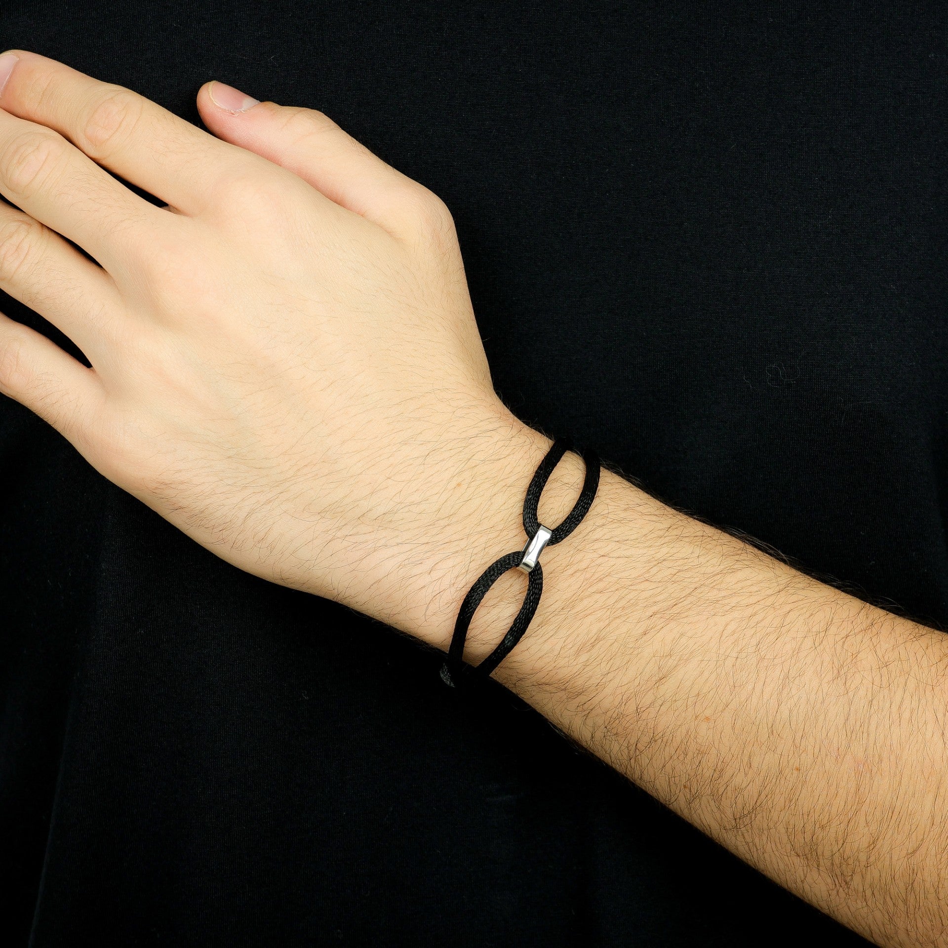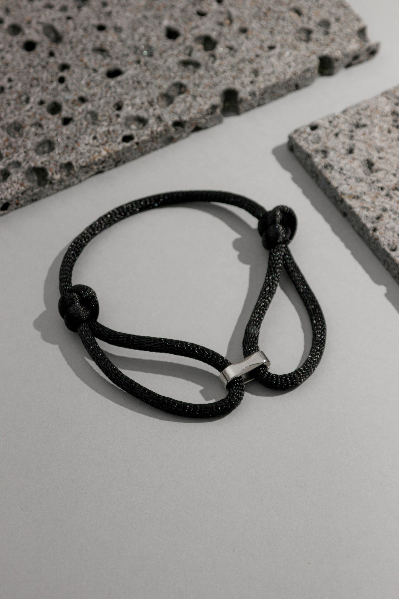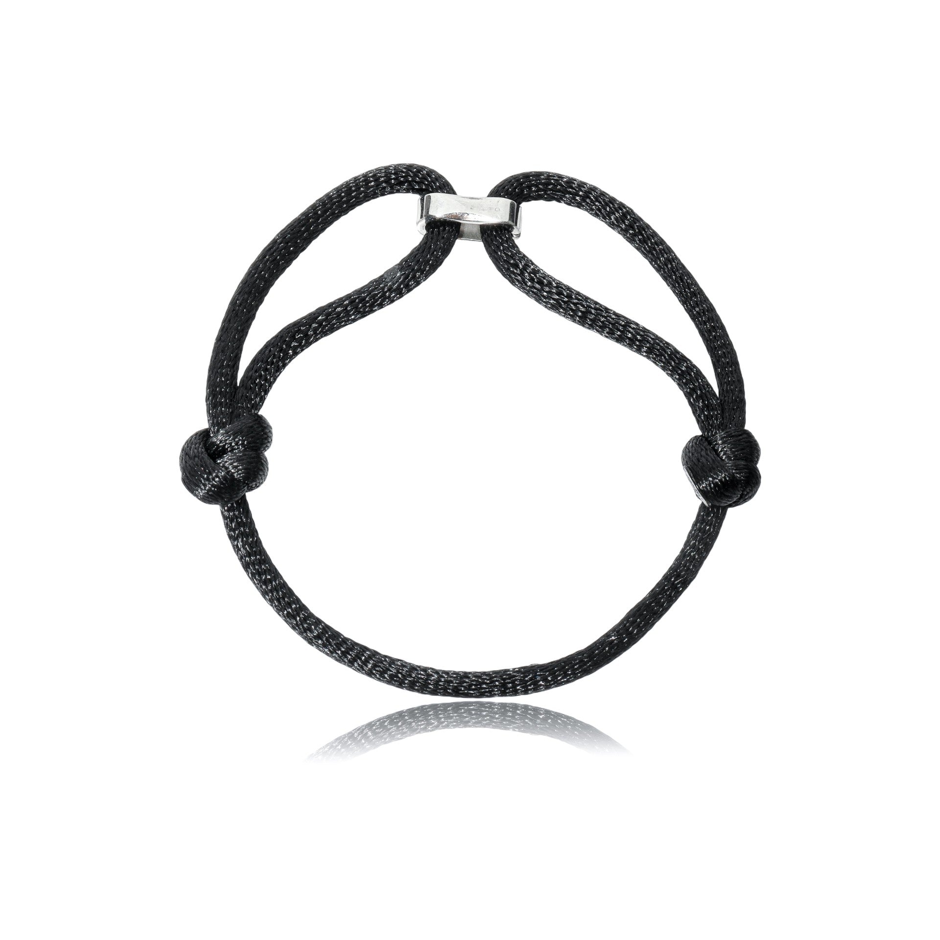 Pulseira Fios de Seda Preta com Berloque de Aço