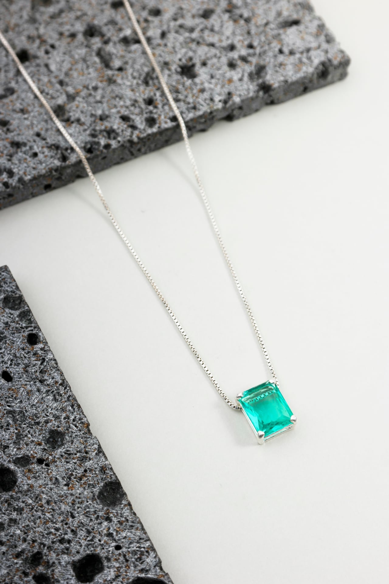 A cor mais desejada da alta joalheria em um design de elegância pura. Este colar "ponto de luz" se destaca pela beleza da pedra natural Turmalina, com seu tom azul-esverdeado vibrante que adiciona um toque de cor e sofisticação a qualquer produção.