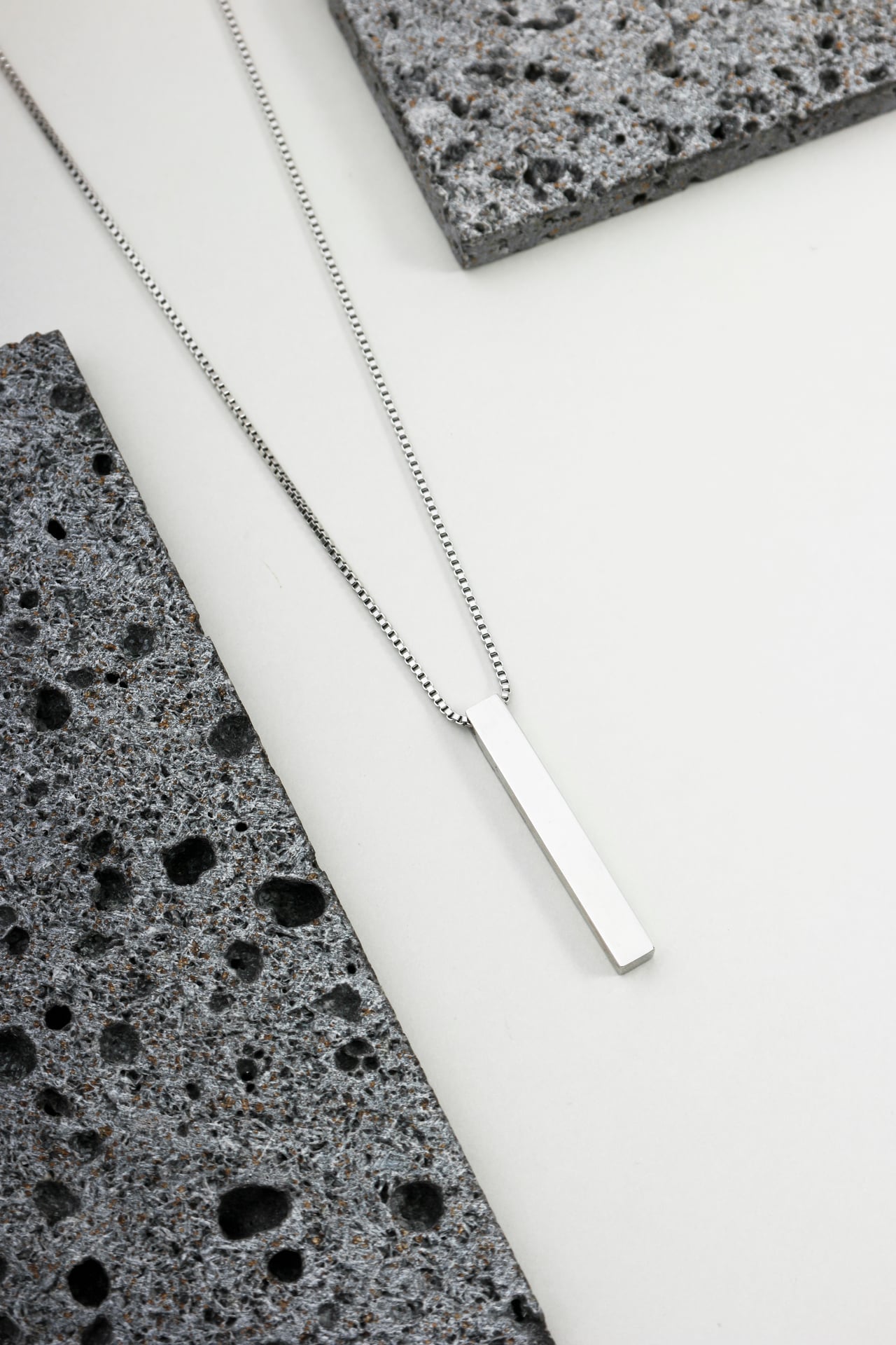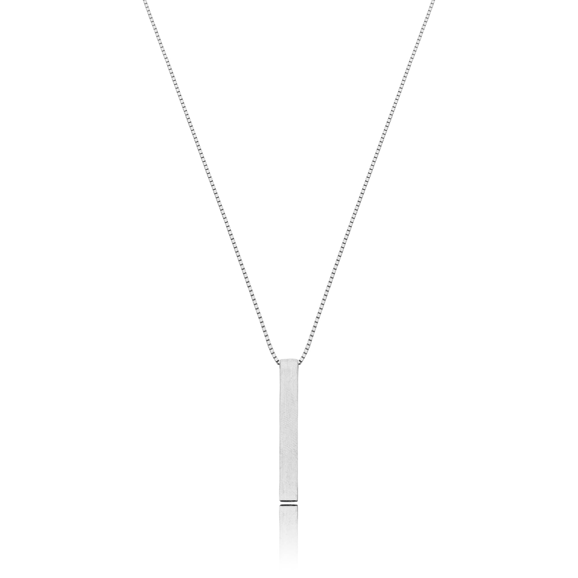 A essência do design minimalista em uma joia de pura sofisticação. Este colar se destaca pela sua estética clean, combinando o formato geométrico da barra com o acabamento acetinado, que confere um toque sutil e contemporâneo à peça.