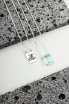 Pingente 1: Zircônia retangular em tom de Água Marinha com lapidação facetada.