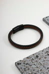 A combinação clássica do preto e marrom em um design moderno e texturizado. Esta pulseira de couro trançado bicolor é a peça perfeita para quem busca versatilidade e um toque de cor sofisticado para complementar o visual.