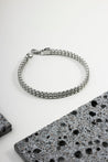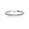 A elegância geométrica da malha Veneziana em dobro. Esta pulseira se destaca pelo seu design de correntes paralelas, que cria uma textura sutil e um visual moderno. É o acessório perfeito para quem aprecia a sofisticação do design minimalista com um toque de presença.