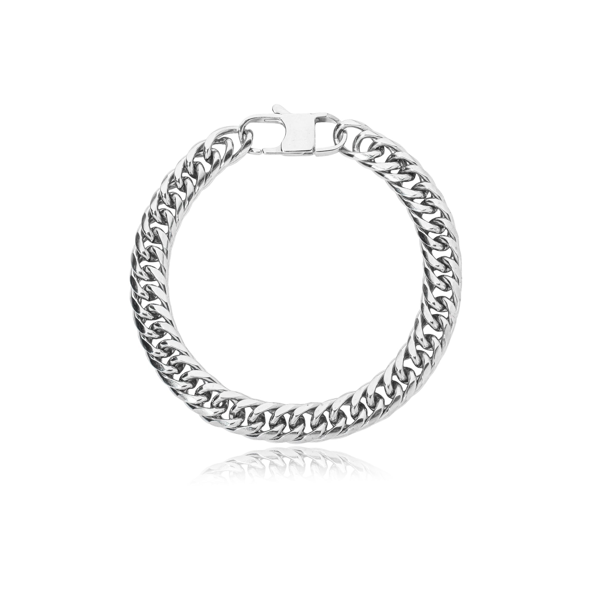 Um verdadeiro ícone do estilo urbano. Esta pulseira de corrente Cubana se impõe pelo design de elos densos e robustos e pelo brilho espelhado do Aço. É mais que um acessório, é uma declaração de atitude e presença.