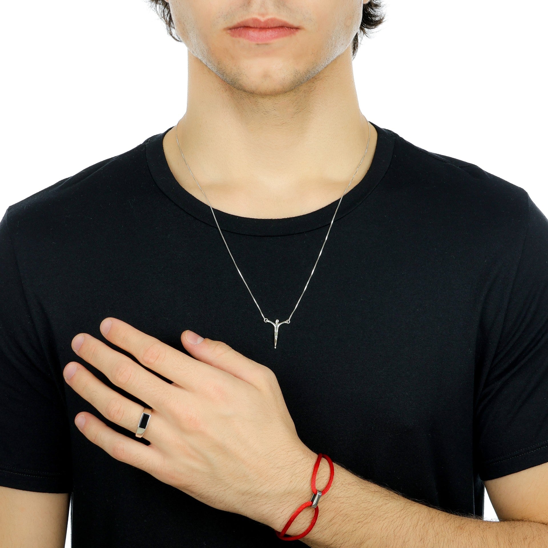 A leveza do minimalismo com a energia de uma cor vibrante. Esta pulseira de seda laranja combina o toque macio do fio com o brilho moderno do berloque em aço, criando um acessório despojado e cheio de estilo.