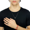 Detalhe Central: Berloque passador retangular em Aço Cirúrgico polido.